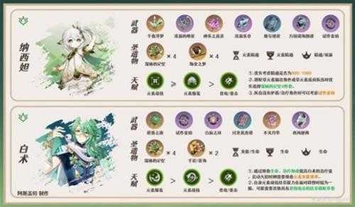 ①.双雷单草时,若将白术替换纳西妲,队伍的容错率会降低,由于八重神子没有像刻晴那样的速切、无敌帧等效果,所以并不太推荐优先考虑,对操作有一定要求,且需要纳西妲搭配「试作金珀」。